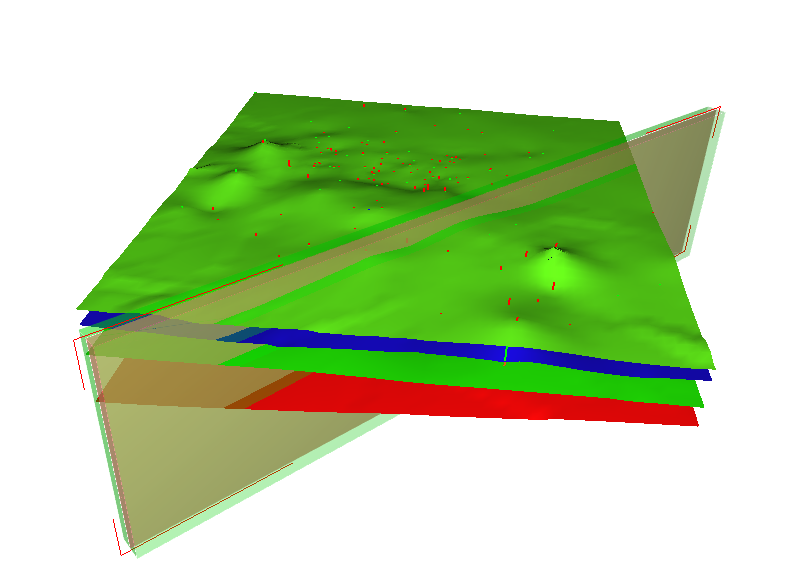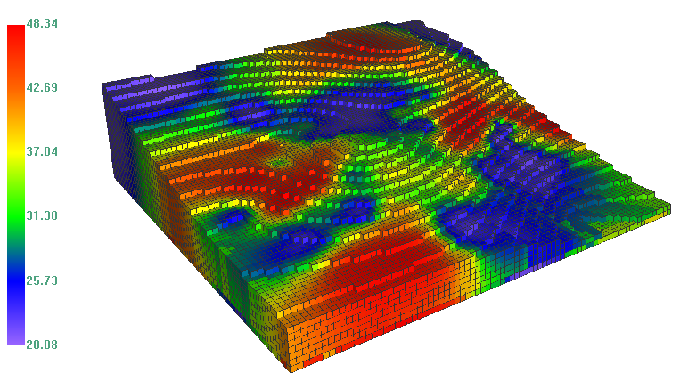 (5)地质统计分析:将地形实体离散化为体素单元,根据采样数据,通过指定插值算法对体素单元的属性进行插值,进而对整个区域进行剖面分析和结果统计。