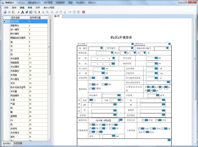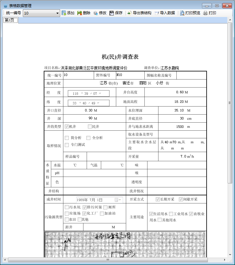 (1)野外调查资料管理:调查表管理提供表格样式设计、表格样式修改、表格数据管理等功能,能够灵活、快速的设计不同样式的表格和实时的对表格样式进行修改,并通过数据库对所有数据进行统一管理,包括数据的查询、添加、删除、修改和打印。